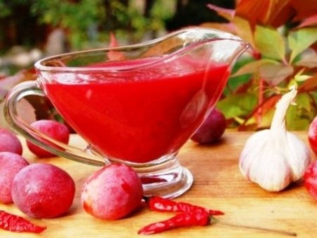 Плоды промываются, очищаются, нарезаются и пропускаются через мясорубку. Состав варится на слабом огне. Перец и лук чистят, шинкуют, добавляют в сливовую массу. Пена снимается шумовкой. Спустя 15 минут добавляются приправы и чеснок, состав варят еще 10 минут. Готовую приправу раскладывают по стерилизованным банкам, закрывают жестяными крышками и хранят в погребе, холодильнике. Заготовка используется в качестве соуса к разным блюдам.