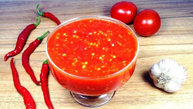 Готовя этот соус, нельзя не вспомнить традиционный рецепт абхазской кухни. Он более острый, но отлично подойдёт к мясным блюдам.