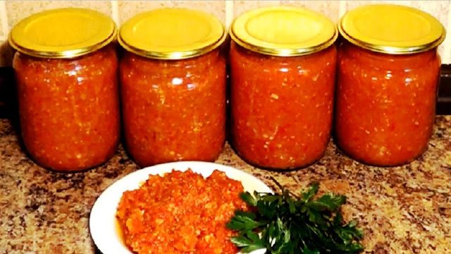 - Закатайте горячую смесь в постерилизованные емкости. Закатанная по этому рецепту аджика из кабачков с яблоками может храниться не одну зиму, но обычно все запасы улетают еще до весны – пальчики оближешь, как вкусно!