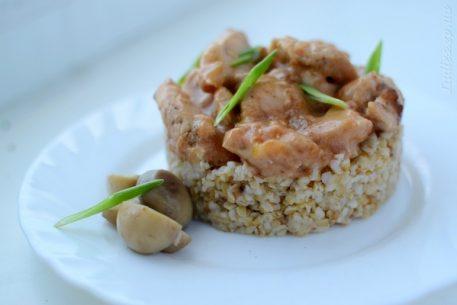 Очень вкусным получается бефстроганов из курицы, если приготовить его с грибами.