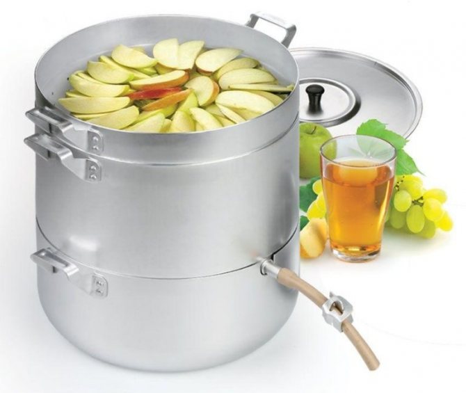 - Когда сока накопится достаточно много, он начинает стекать через отводную трубку в посуду для консервирования.