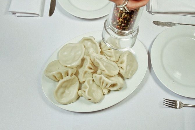 посыпаем хинкали черным молотым перцем и подаем к столу