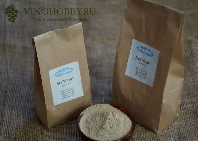 Этот способ считается предпочтительным для устранения мутности домашних напитков из винограда. Бентонит — порошок из белой глины, который совершенно не влияет на вкусовые качества. Единственный его недостаток — вещество дает много осадка, что приводит к потере значительной части исходного объема напитка.