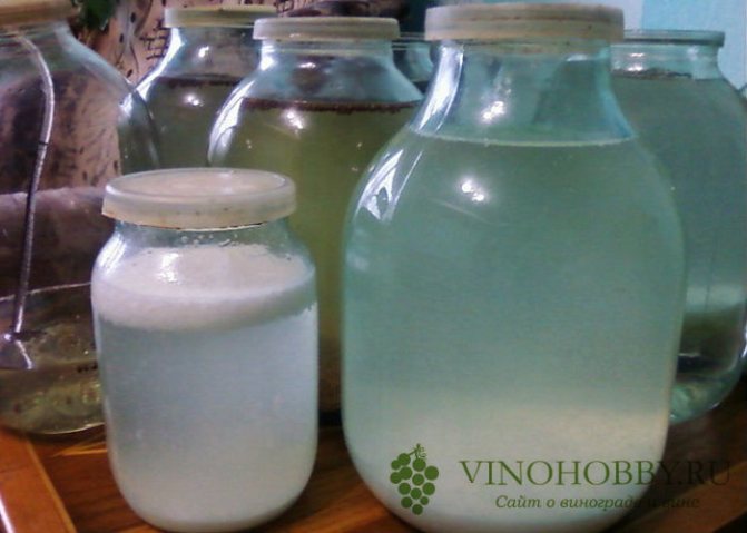 Осадок появляется через 3-4 дня. Алкогольный продукт в течение этого времени выдерживают при комнатной температуре. Потом осветлившееся вино сливают через трубочку в бутылки.