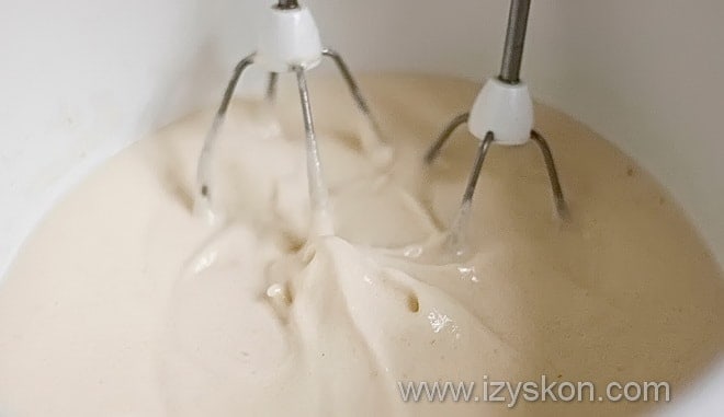 И затем продолжая взбивать, вливаем смесь агар-агара, продолжаем работать миксером еще 1 минуту.