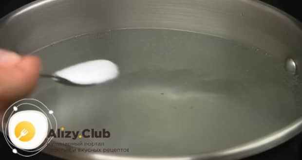 - Кастрюлю нужно поставить на огонь и довести жидкость до кипения, в процессе нагревания нужно добавить небольшое количество соли.