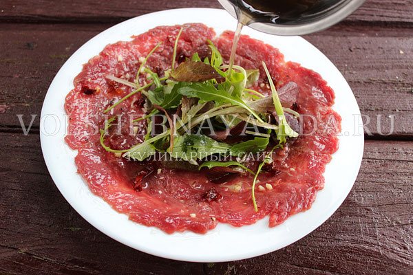 После того как карпаччо будет заправлено, его нужно сразу же подавать на стол.