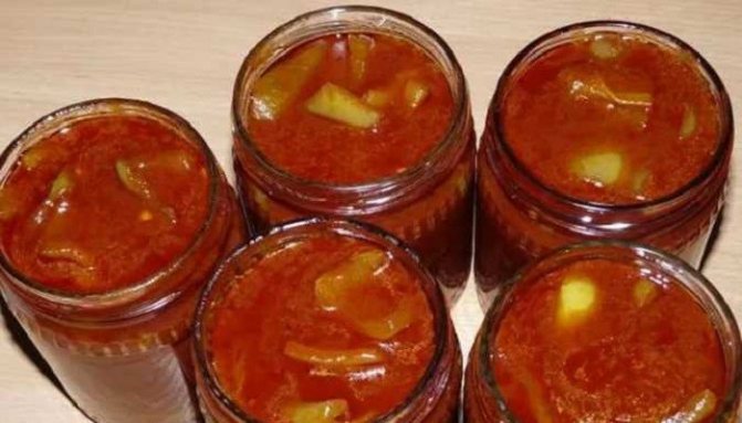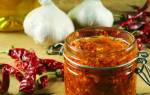 Для любителей «остренького» подойдет именно такая закуска, кроме этого, ее употребляют зимой, как профилактическое средство от простуды. На 2,5 килограмма помидоров берут 2 килограмма болгарского перца, 3 стручка острого и 2 головки чеснока. После варки закуску можно закатать в простерилизованные банки или употреблять свежей.