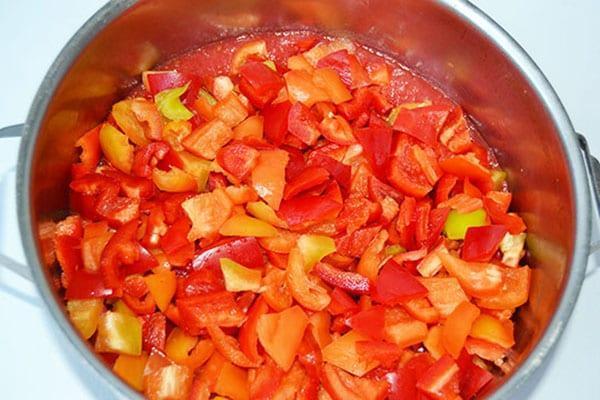 - Всыпать нарезанный перец, варить массу около 15 минут.
