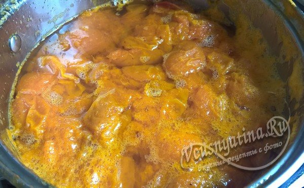 Совсем скоро, когда абрикосы начнут закипать, они пустят сок и окажутся окруженными большим количеством жидкости