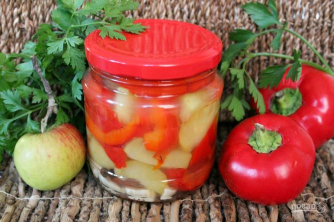Зимняя заготовка из красного перца и яблок. Закуска наполнена ароматом лета. Перец замечательно сочетается с яблоками и пропитывается пряным маринадом. Попробуйте!
