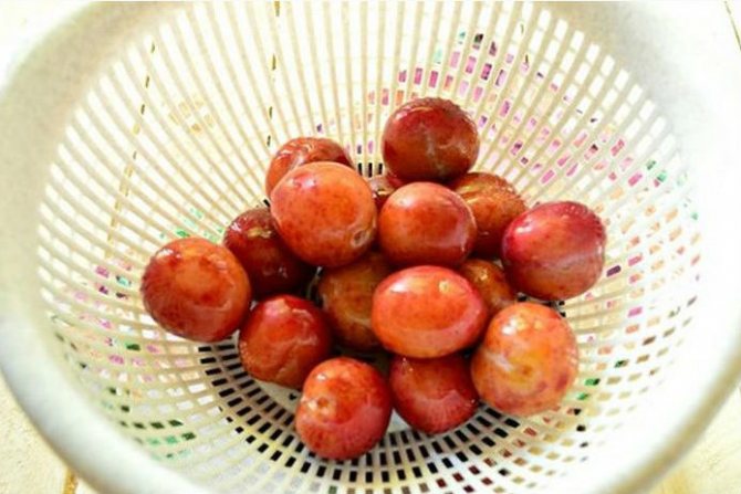 Не рискуя качеством будущей заготовки, сразу отбрасываем подгнившие, вялые сливы — прошедшие проверку погружаем в таз холодной водой, моем и лучше с губкой. Часто кроме сизого налета на поверхности плодов скапливается пыль. Тем более, если пришлось собирать уже опавший урожай с земли. После мойки слегка просушиваем.