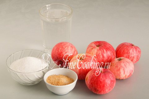 Для приготовления домашнего яблочного желе нам понадобятся следующие ингредиенты: вода, яблоки, сахарный песок и желатин. Количество сахара определяйте по своему вкусу – чем слаще яблоки, тем меньше его надо. Желатин я использую не быстрорастворимый, а требующий предварительного замачивания в холодной воде.
