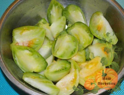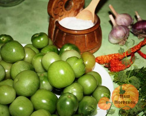 - Зеленых помидоров – 850 г;
