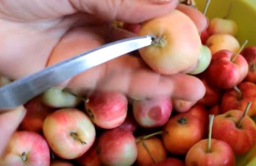 - С чистых вымытых яблок сорвать плодоножки. Желающим сохранить первозданный вид китаек, хвостики можно оставить, их наличие на хранение не повлияет.