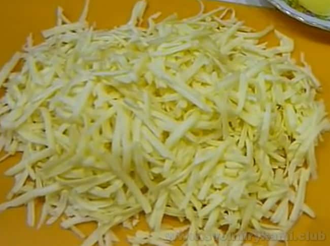 - В другую миску натираем сыр на мелкой терке. Должна получиться совсем мелкая крошка, а потому выбирайте именно ту разновидность сыра, которая отличается повышенной твердостью, например, пармезан.