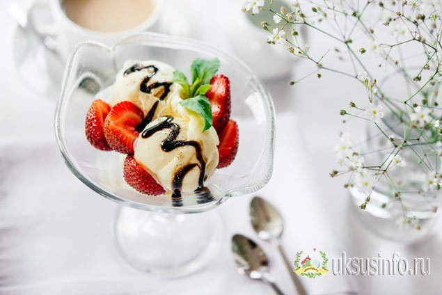 Этот рецепт, пожалуй, самый оригинальный и неожиданный в своем применении. Бальзамический крем подают вместе со сладкими десертами – фруктовыми салатами, мороженым, пирожными.
