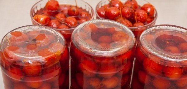 - Готовое прозрачное варенье из райских яблок с хвостиками, приготовленное по рецепту с пошаговыми фото, разливаем по банкам, закрываем крышками и убираем.