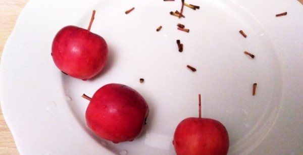 - Освобождаем от листьев плоды, отбираем хорошие, промываем, просушиваем. Прокалываем шпажками, чтобы яблоки полностью пропитались сиропом.