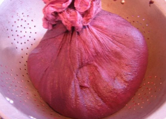 - По истечению указанного периода времени нужно процедить содержимое через марлю и хорошенько отжать сок. Если он будет сильно кислый, можно добавить 50-500 мл воды (из расчета на 1 литр сока).