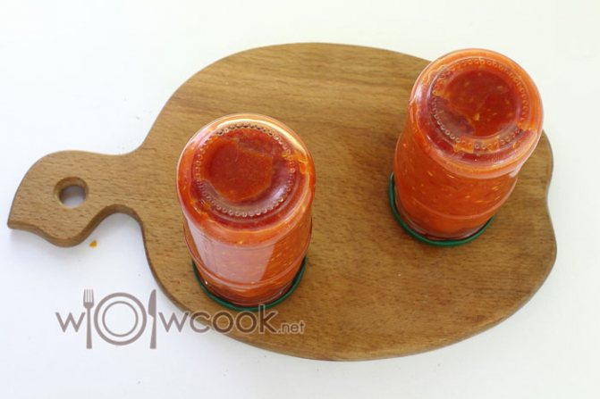 Выкладывать готовый соус следует в стерилизованные банки и закрывать прокипяченными крышками.